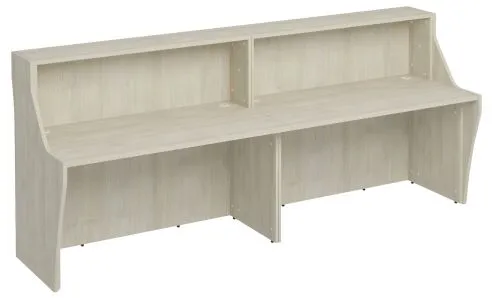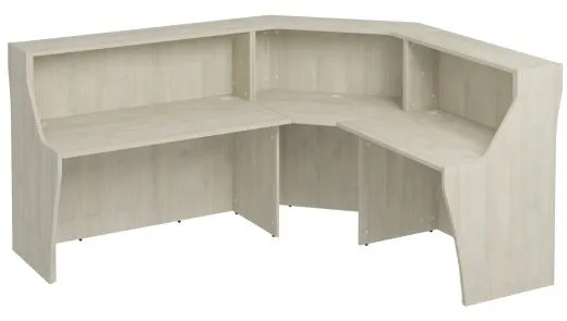 Функциональный стол стойка ресепшн для приемной зоны изготавливается из качественных материалов. Столы для администратора в основном производят из ламинированного ДСП. Популярный материал обладает рядом преимуществ:
