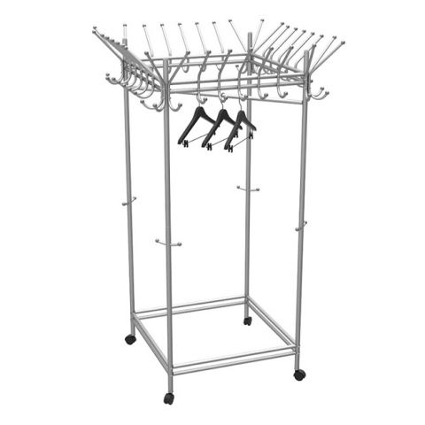 Если важна мобильность, идеальным решением станут напольные вешалки. Такие конструкции легко перемещать, что особенно удобно для гардеробных комнат, бутиков и крупных магазинов. Они позволяют разместить одежду в удобном порядке и при необходимости быстро изменить расположение мебели.