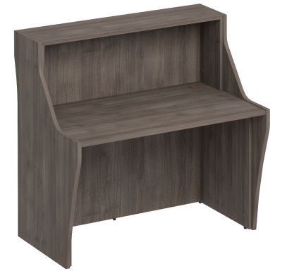 Высокая ресепшен стойка администратора, может быть, в разных вариантах. Эта мебель бывает: